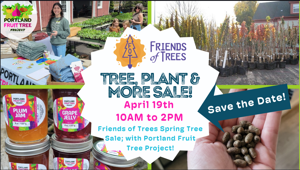 Friends of Tree’s Annual Tree Sale returns featuring a selection of high quality, locally sourced trees at unbeatable prices! Our partners at Portland Fruit Tree Project will be onsite to offer fruit tree guidance and will have items like jams, jellies, vines, and bushes available.